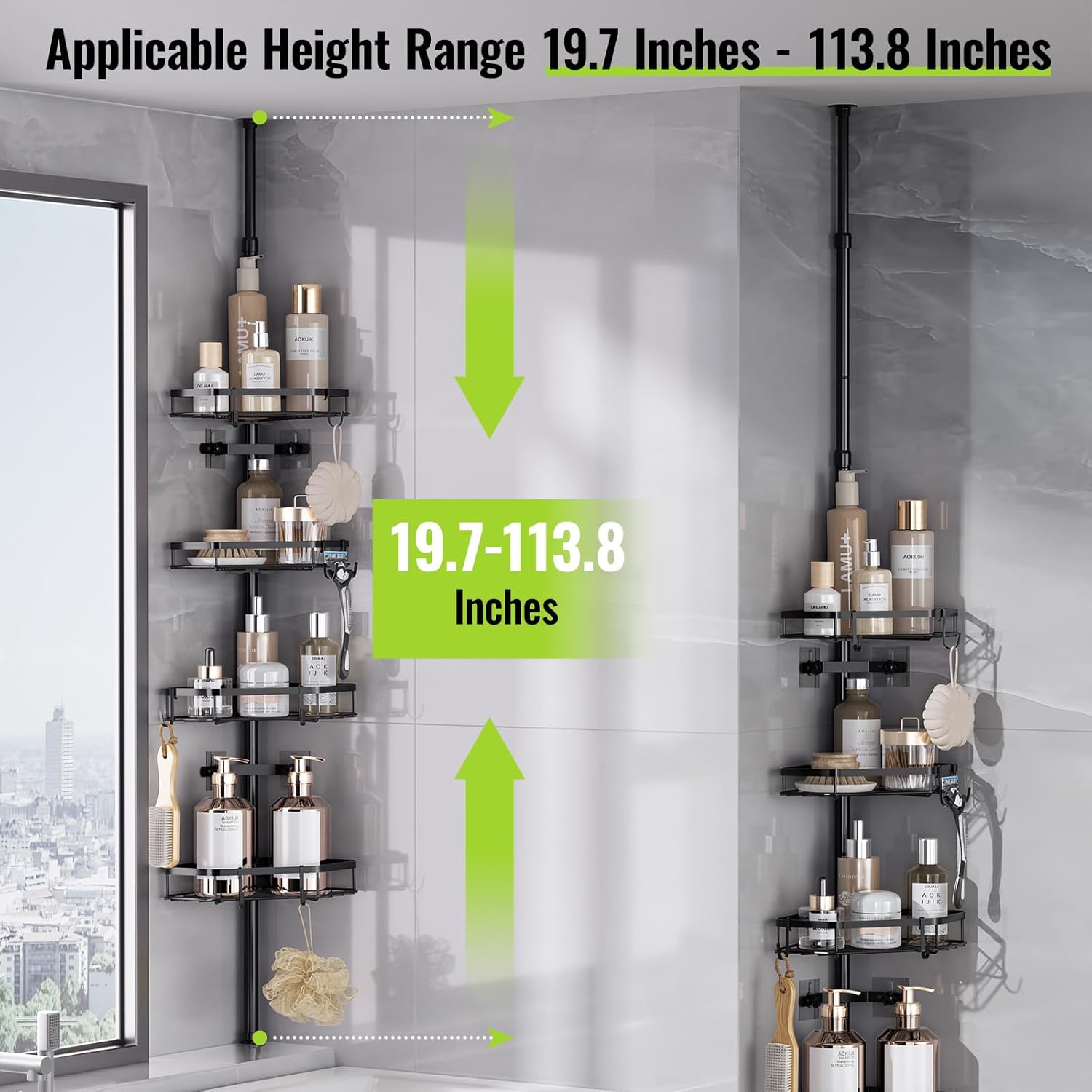- Easy Tool-Free Setup: Installs in minutes with a tension pole—no drilling or wall damage. Fits bathtub or shower corners perfectly for neat, clutter-free storage.